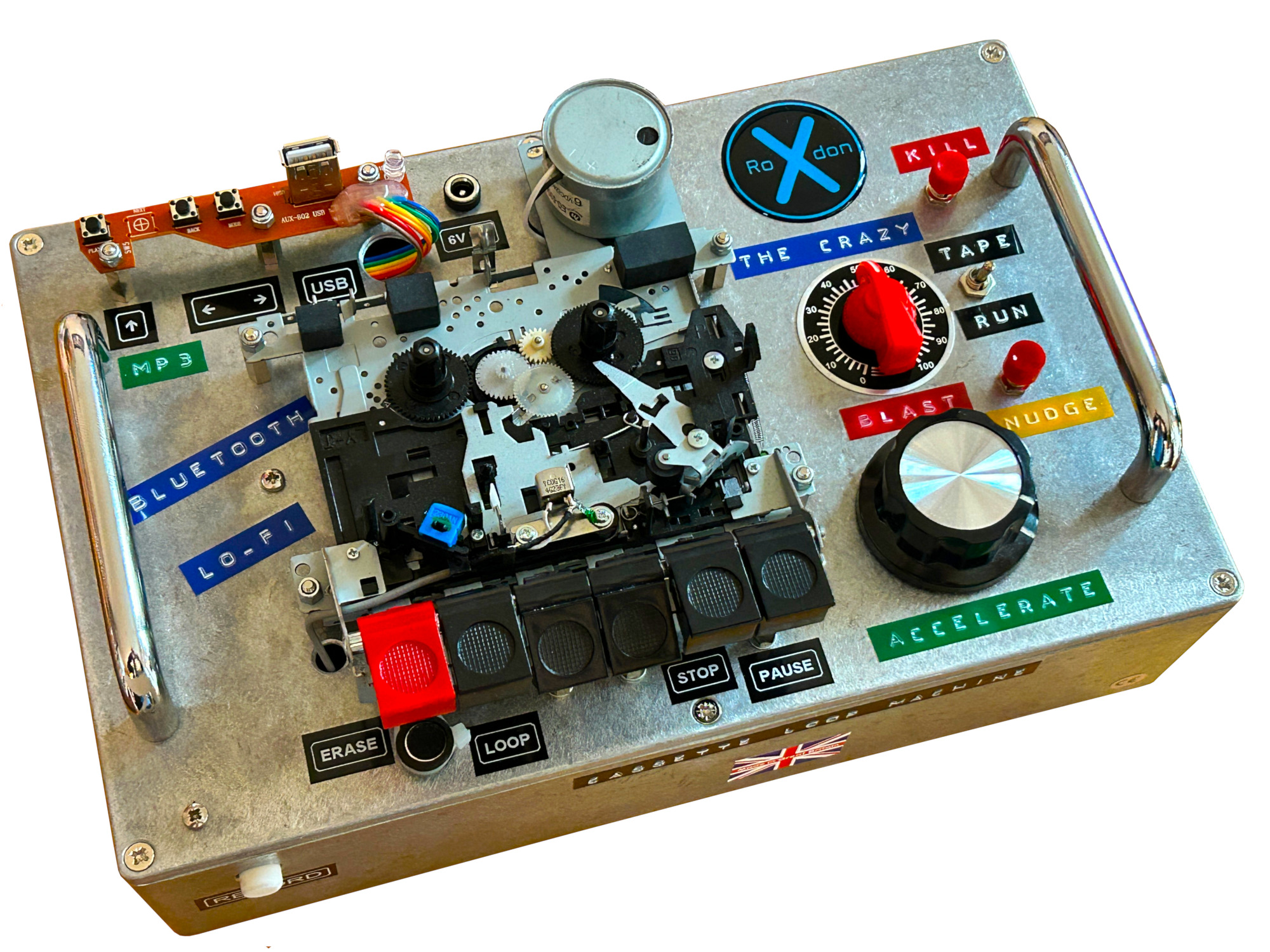 The RoXdon THE CRAZY LoFi Cassette Loop Tape Machine has been designed to easily create Cassette Loop Tapes from various audio inputs. Nothing else on the planet can achieve what the RoXdon THE CRAZY can do. Truly a Crazy device in looks and functionality! Using a